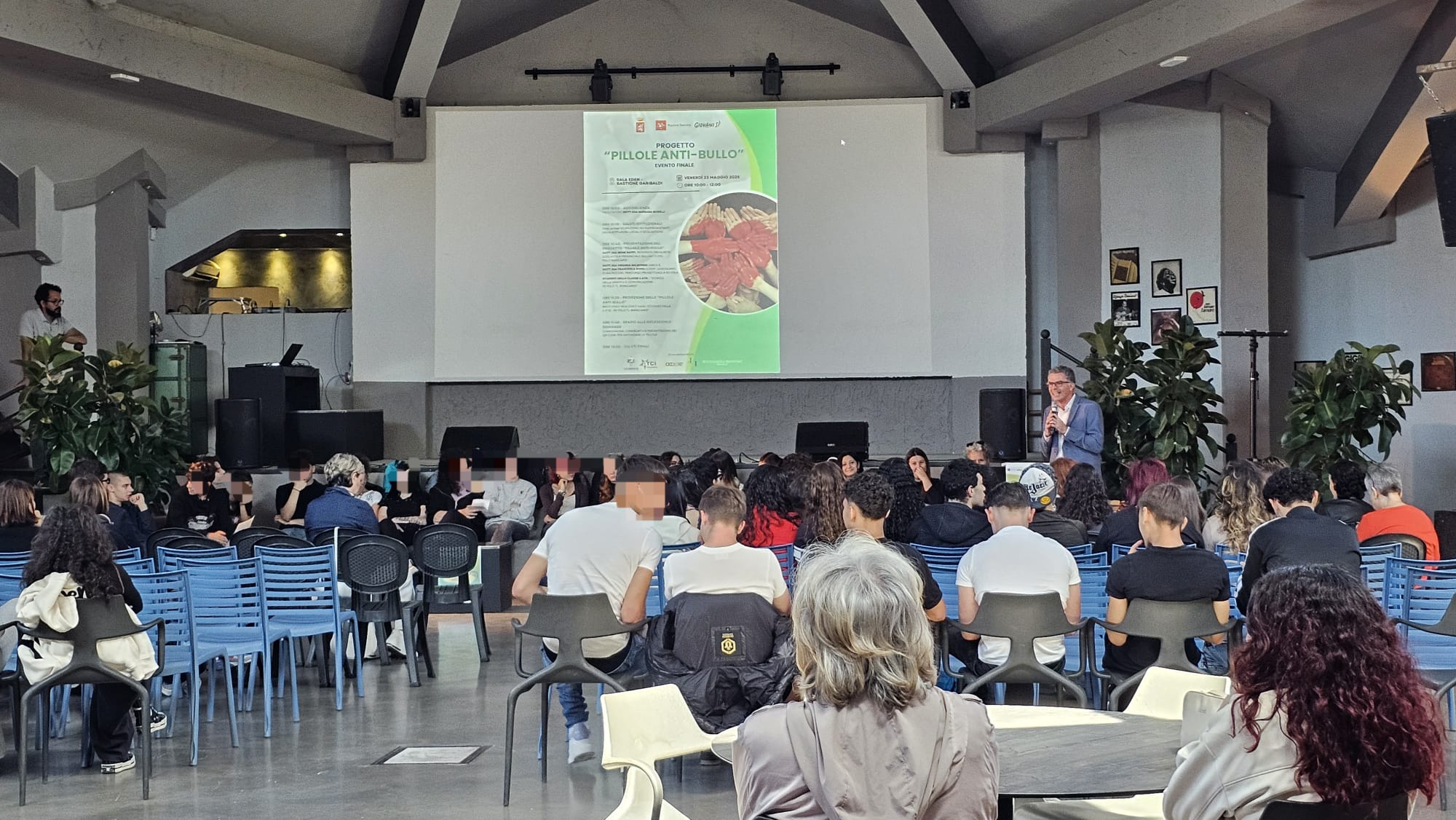 Si è tenuto alla Sala Eden, venerdì 23 maggio 2025, l’evento conclusivo del progetto “Pillole anti-bullo”, promosso dal Comune di Grosseto, cofinanziato dalla Regione Toscana e realizzato in collaborazione con Coeso Società della Salute, Arci e cooperativa Giocolare, che ha coinvolto gli studenti della IV Atg del Polo Bianciardi indirizzo Tecnico della grafica e della comunicazione di Grosseto.